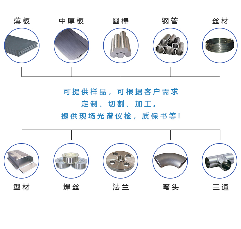 熱扎棒10~100mm,鍛制棒:100mm~350mm,冷扎薄板0.05mm-4.0mm,熱扎板:4mm~14mm,帶2mm-10mm,各尺寸規(guī)格鍛件環(huán)件,庫存?zhèn)€別牌號(hào)不定尺。